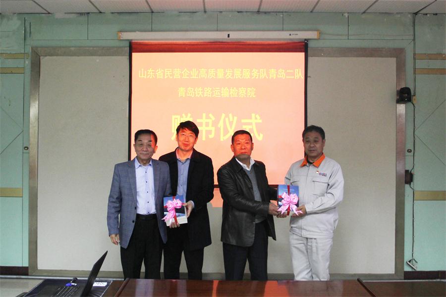 省民營企業(yè)高質(zhì)量發(fā)展服務(wù)隊(duì)和青島鐵路運(yùn)輸檢察院的各位領(lǐng)導(dǎo)參觀了科技文化館、智能化生產(chǎn)車間和信息化系統(tǒng)管理平臺,對我公司在全面落實(shí)疫情防控和復(fù)工復(fù)產(chǎn)等方面的做法給予充分肯定。最后,在公司培訓(xùn)中心進(jìn)行了座談,共同探討今后高質(zhì)量發(fā)展服務(wù)相關(guān)工作的重點(diǎn)和方向,并舉行了贈書儀式和防疫物資捐贈儀式。
